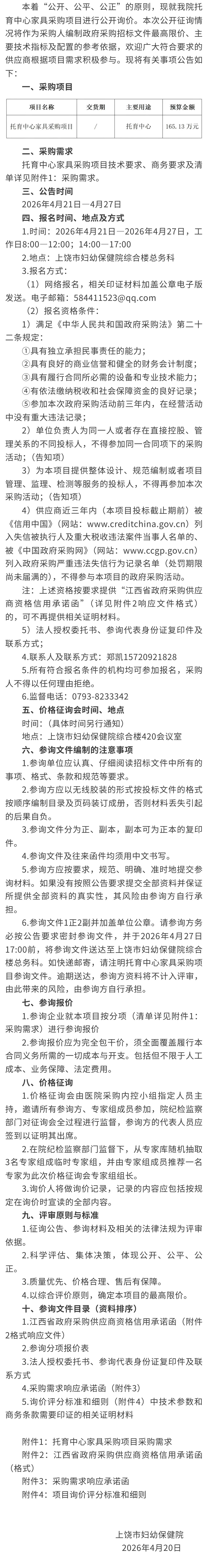 上饶市妇幼保健院托育中心家具采购项目询价公告