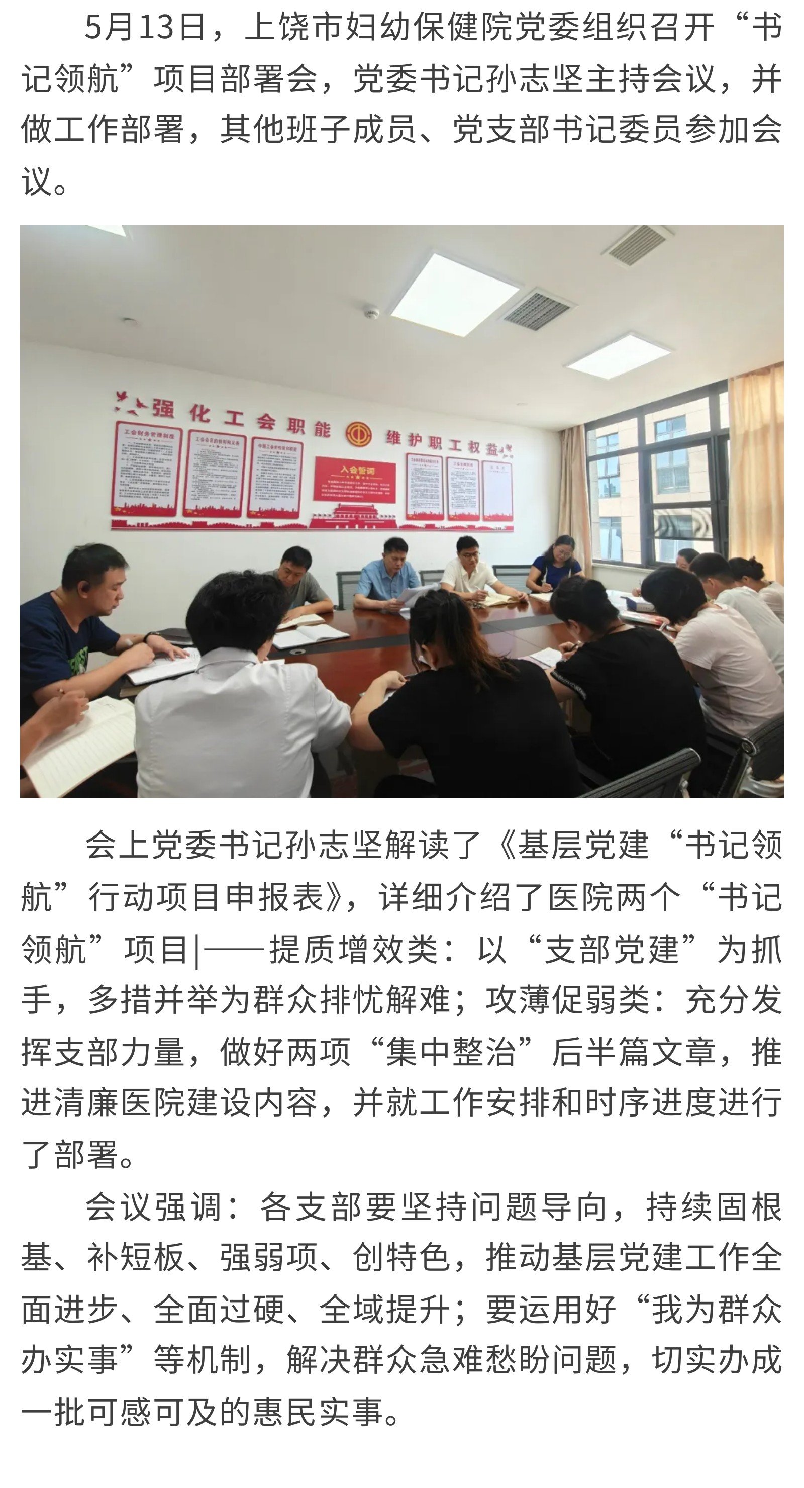 【党建引领】上饶市妇幼保健院组织召开“书记领航”项目部署会